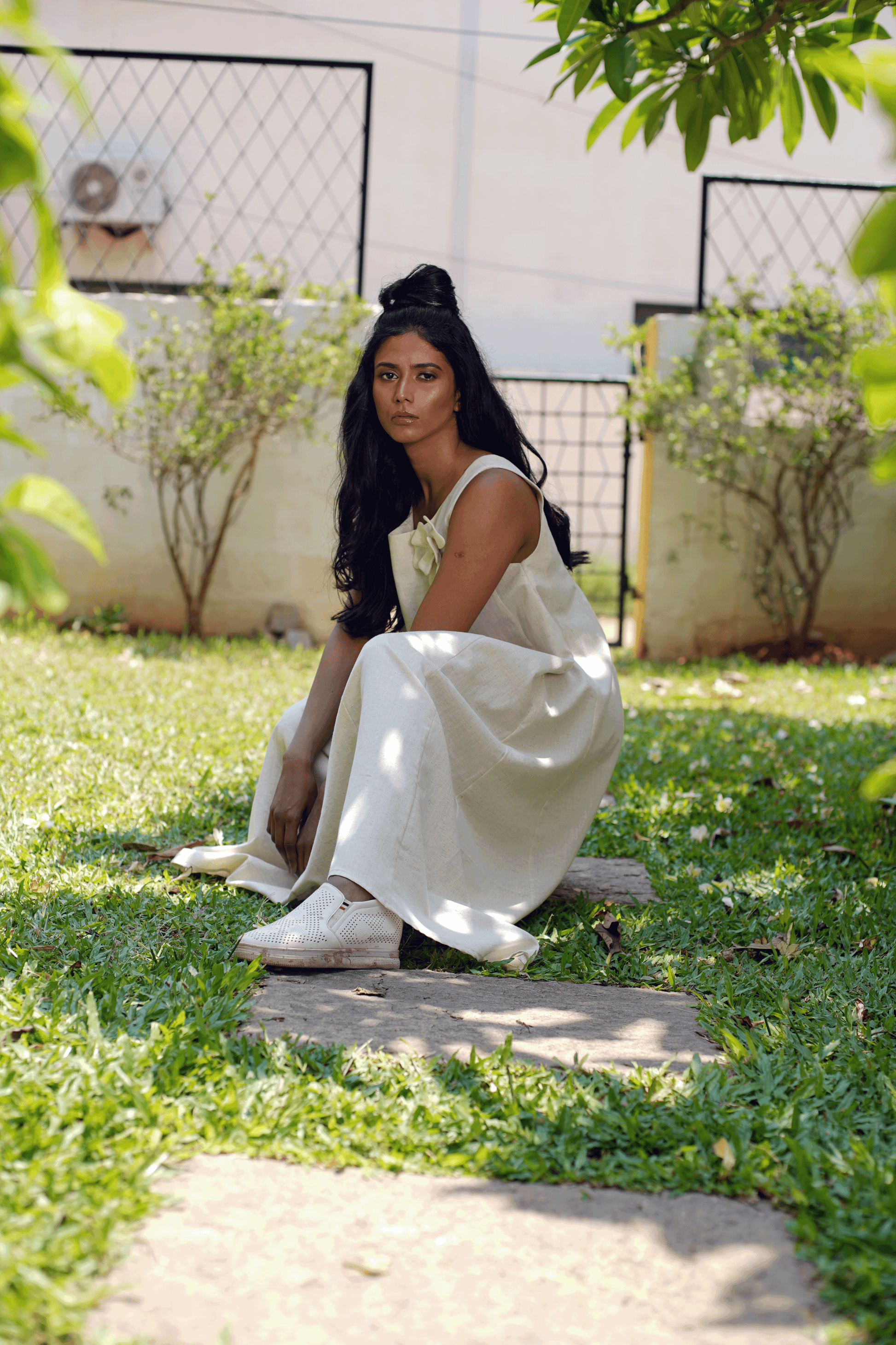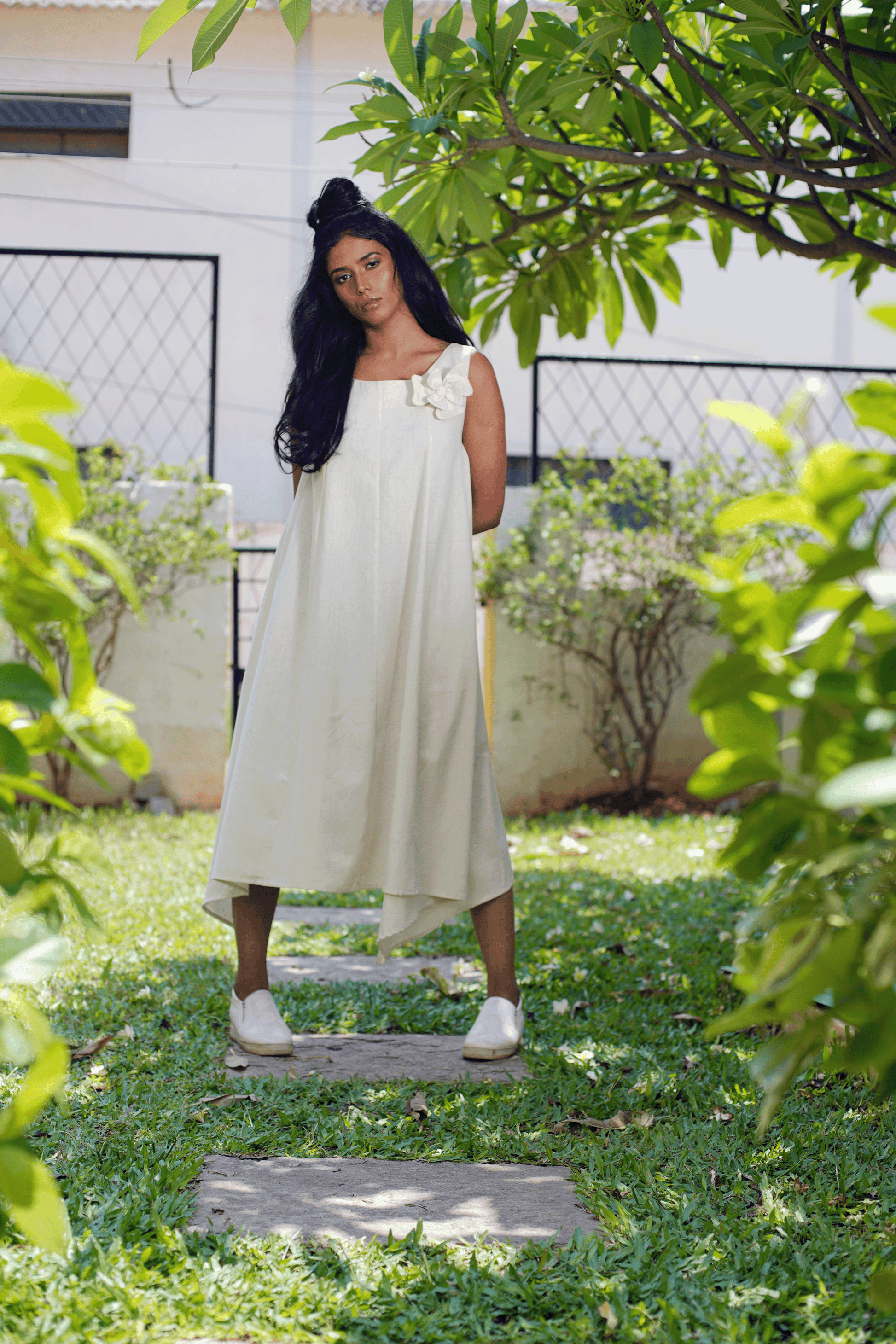 Say hello to this breathable panel dress in soft cotton. The florette adds to the look making this a functional style statement.